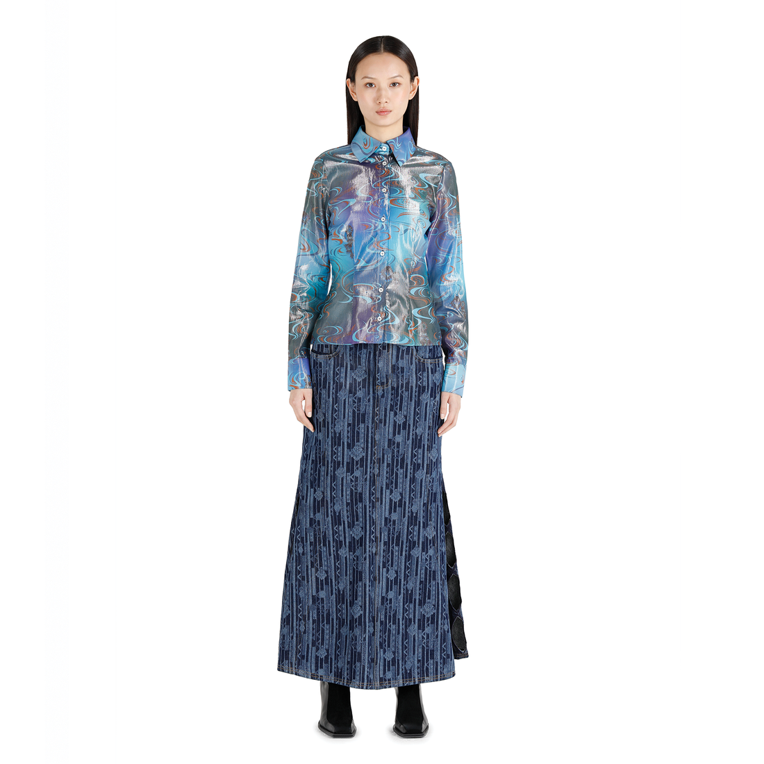 Description: Featuring an all-over ombre print in blue with swirls and motifs inspired by traditional...