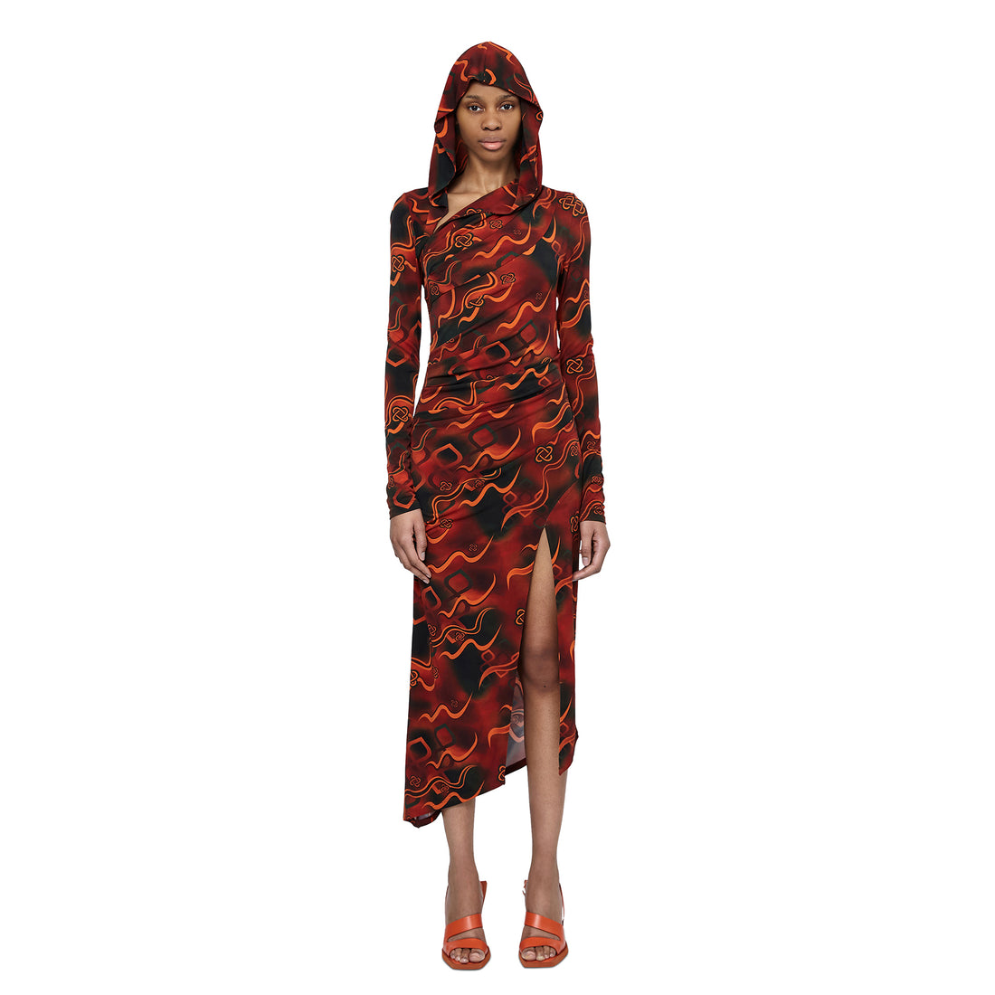 Description: The Parvati hooded dress is inspired by the classic silhouette of Indian Saris. The...