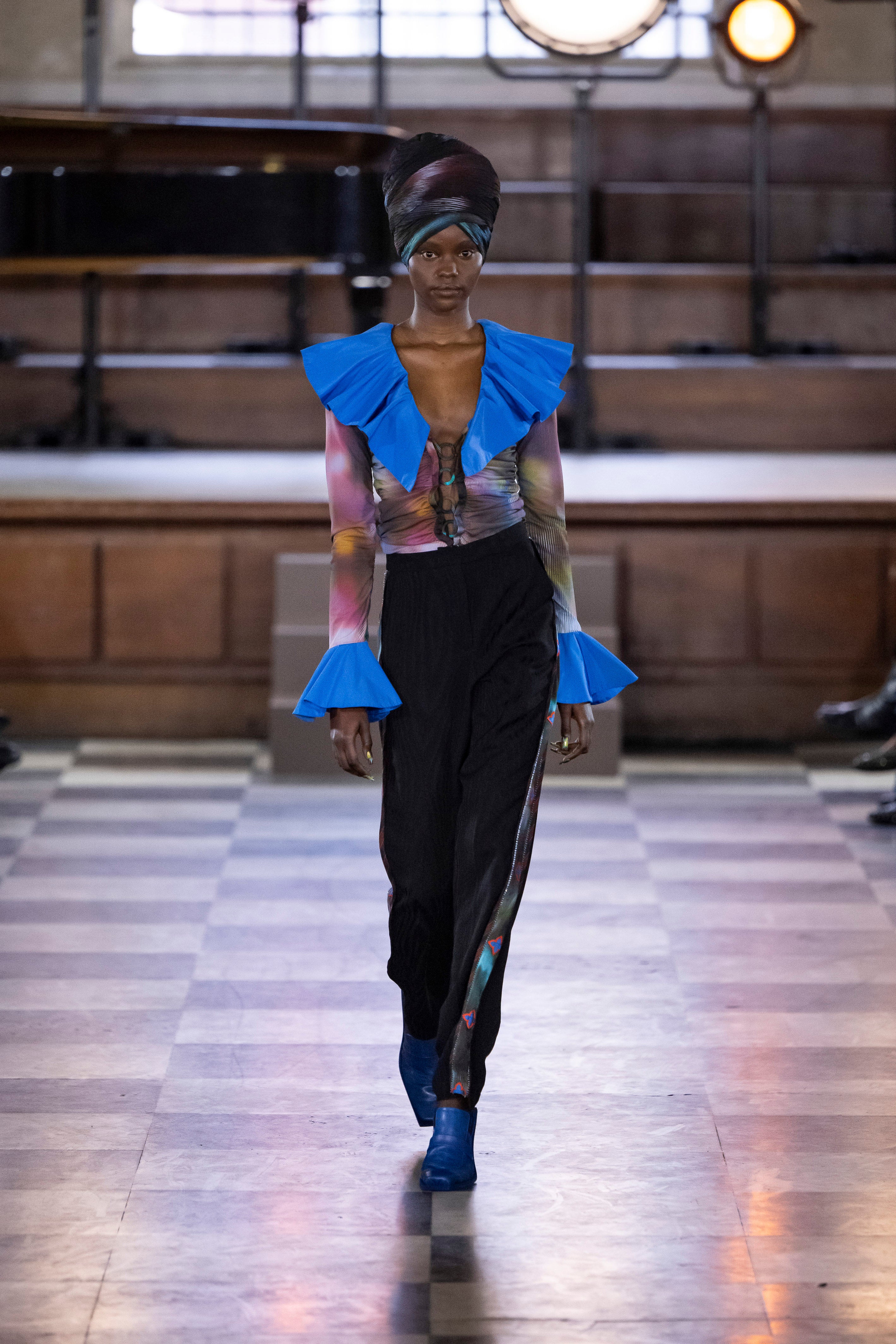 For Ahluwalia’s Autumn Winter 23 collection, the genesis starts with sound. Entitled Symphony, Creative Director and Founder Priya Ahluwalia rediscovered the music of her youth– the Bollywood soundtracks and the mainstream Hip-Hop that littered the airwaves in the 90s and 00s as Priya came of age to the bashment and house music she enjoyed at parties in her teens and more recently the afrobeat and neo-wave R&B she listens to in her everyday life.
