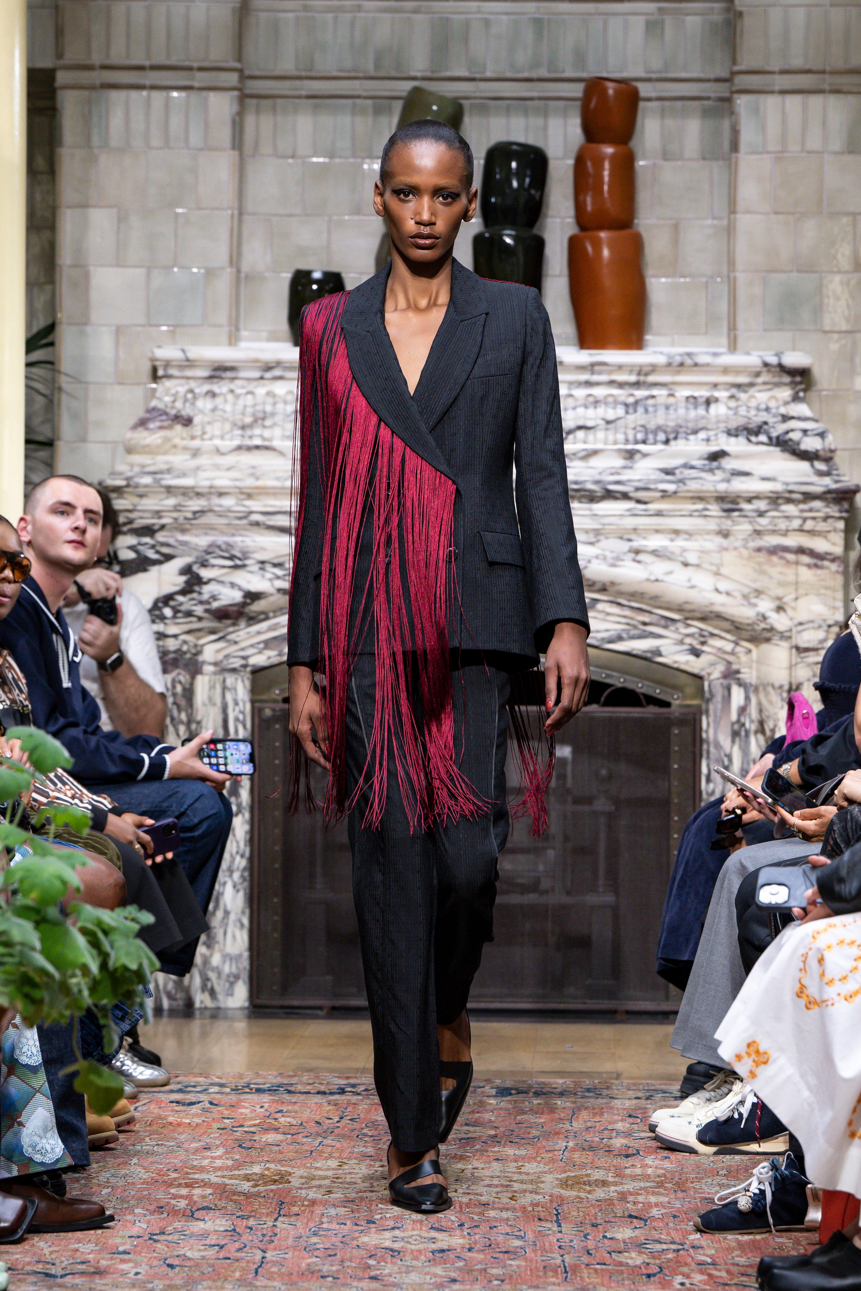 Echoes of belonging, the pull of distant memories, and a secure sense of self—Ahluwalia’s SS25 collection serves as an homage to the profound ties that bind us to our roots. Inspired by the stories of those who have traversed continents, the collection reflects on the emotional landscapes of migration, the lingering call of ancestral homes, and the delicate balance between past and present. Through this exploration, the designer reimagines the concept of home, intertwining personal history with artistic expression to create a collection that resonates with one’s deepest longings.