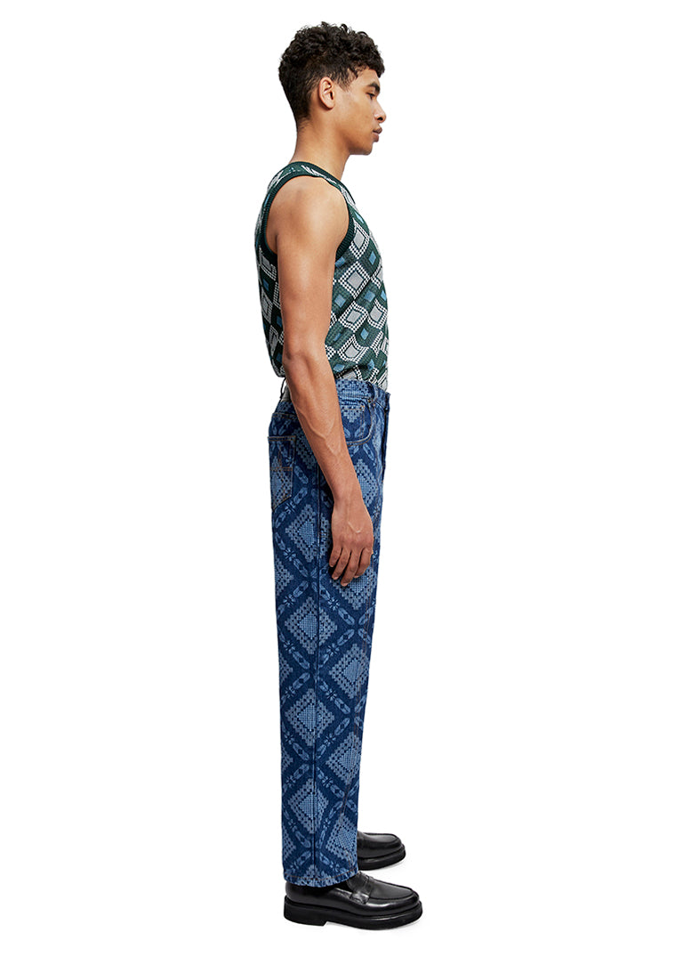 Knitted in sporty viscose in a unique Ahluwalia jacquard pattern, this relaxed-fit textured vest features a straight hem, low-hung armholes and a ribbed neckline and sleeves.