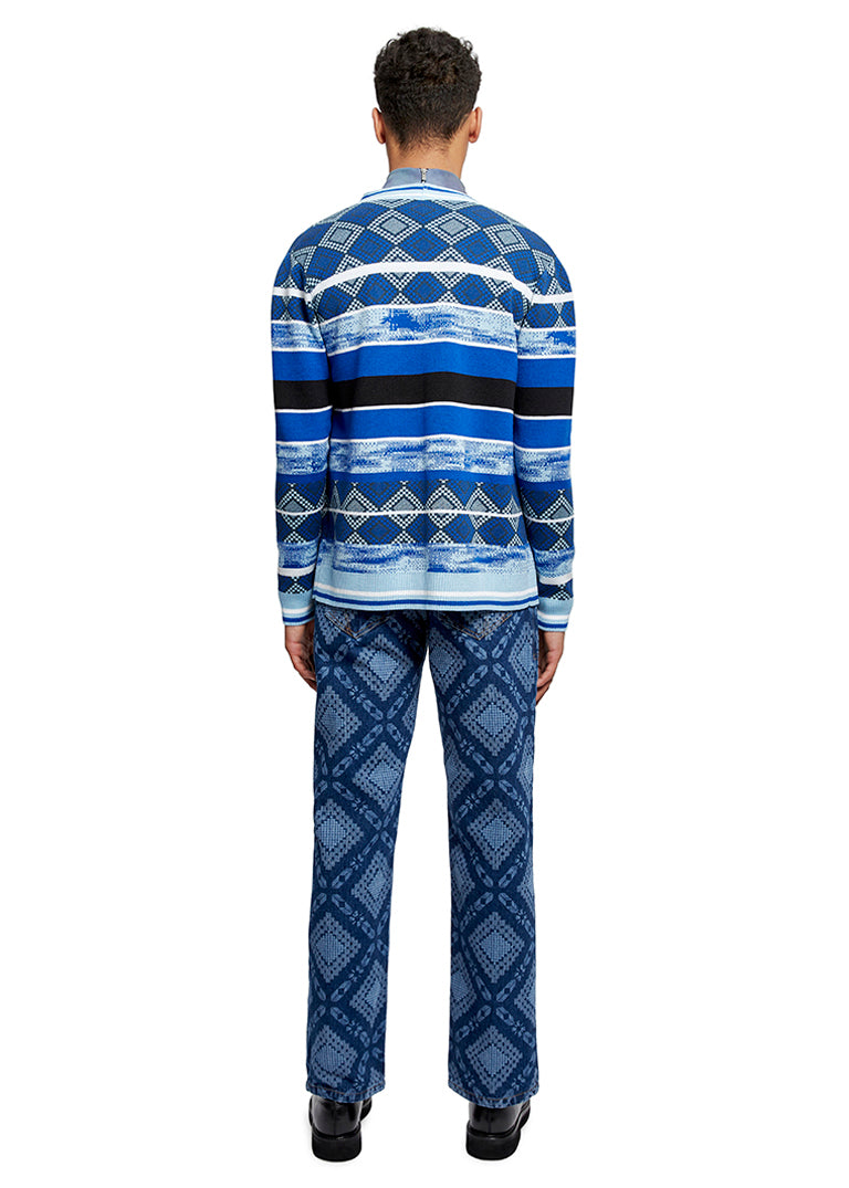 Knit from 100% pure merino wool, this new shape for AW22 features a graphic yet relaxed and textured pattern. The v-neck cardigan is accented with a ribbed hem, cuffs and sable buttons.