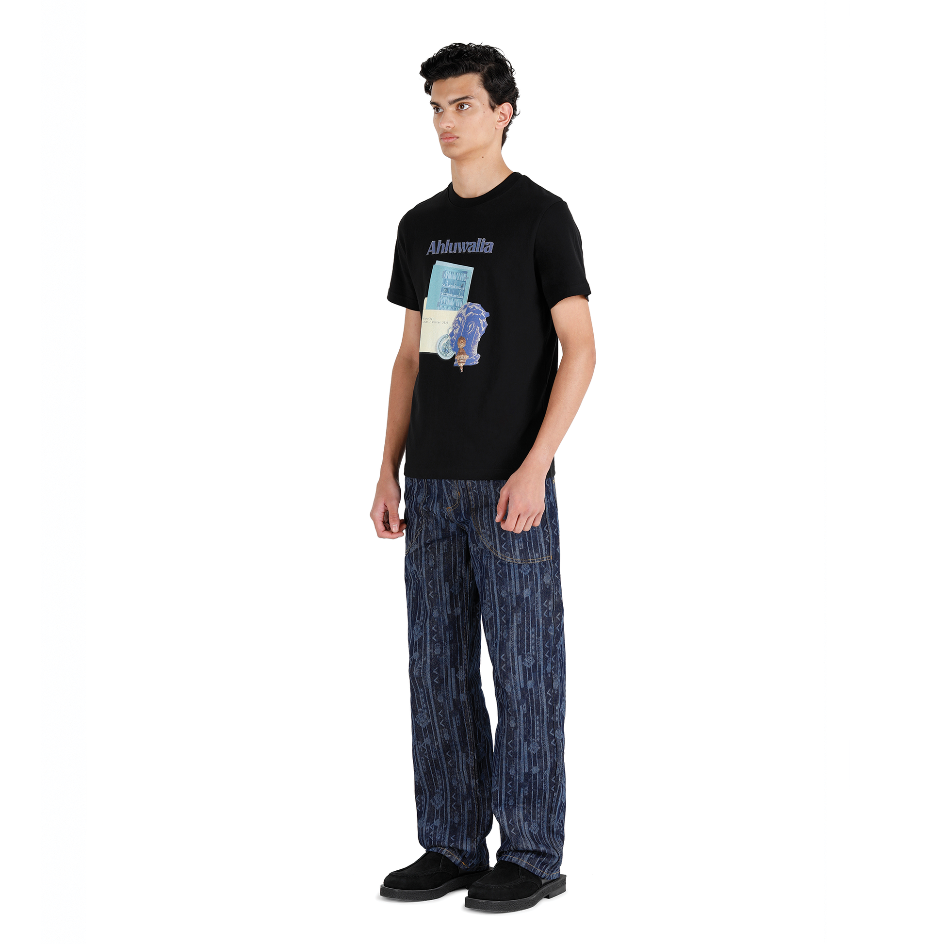This T-shirt features a graphic inspired by an archive envelope discovered in museum filing sections, combined with motifs from traditional Indian jewellery and sculptures.