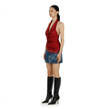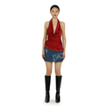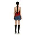 The denim mini skirt features elements of this season’s ‘Vinyl’ graphic lasered on the front, inspired by the act of creating mixtapes for the ones you love. Black and Asian-inspired cherubs are also lasered onto the front, with the Ahluwalia logo discreetly placed on the back hem. Made from recycled denim.